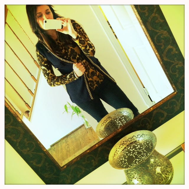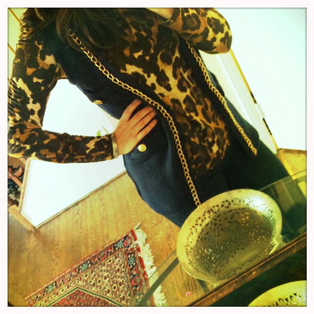 I love it! I love everything leopard and I really like the contrast with the navy vest.