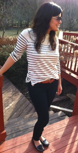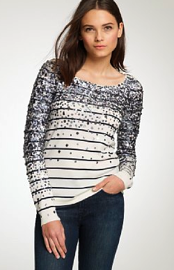 While in Colorado I purchased this Striped Sequin top from the J.Crew outlet. It can be dressed up with a black leather skirt or dressed down with jeans (as seen below). J.Crew is currently selling this sequin sweater which I love even more!