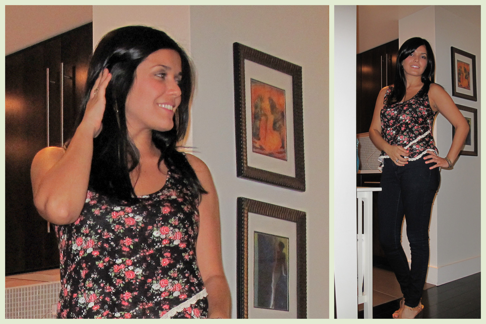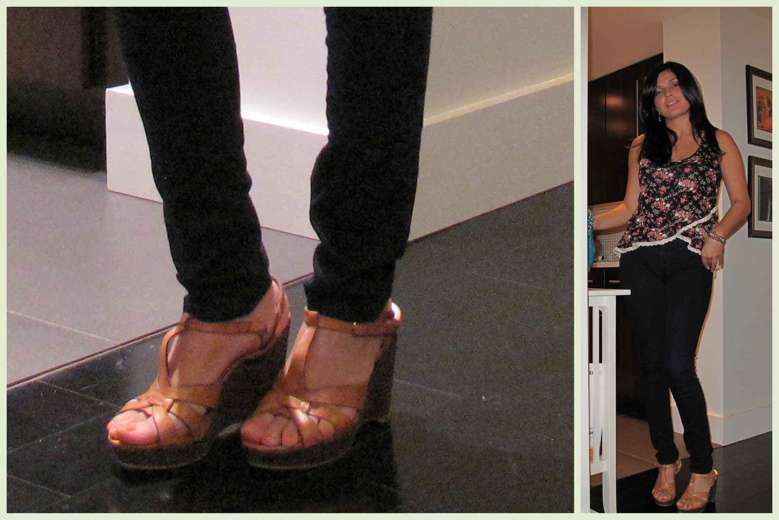 Recently I’ve been experimenting with floral patterns. I have always imagined them to be too girly for me but I’ve learned that the key is how to properly style it. Combining a floral pattern top with dark skinny jeans and neutral platform wedges creates an edgy yet playful look that is perfect for an evening out.